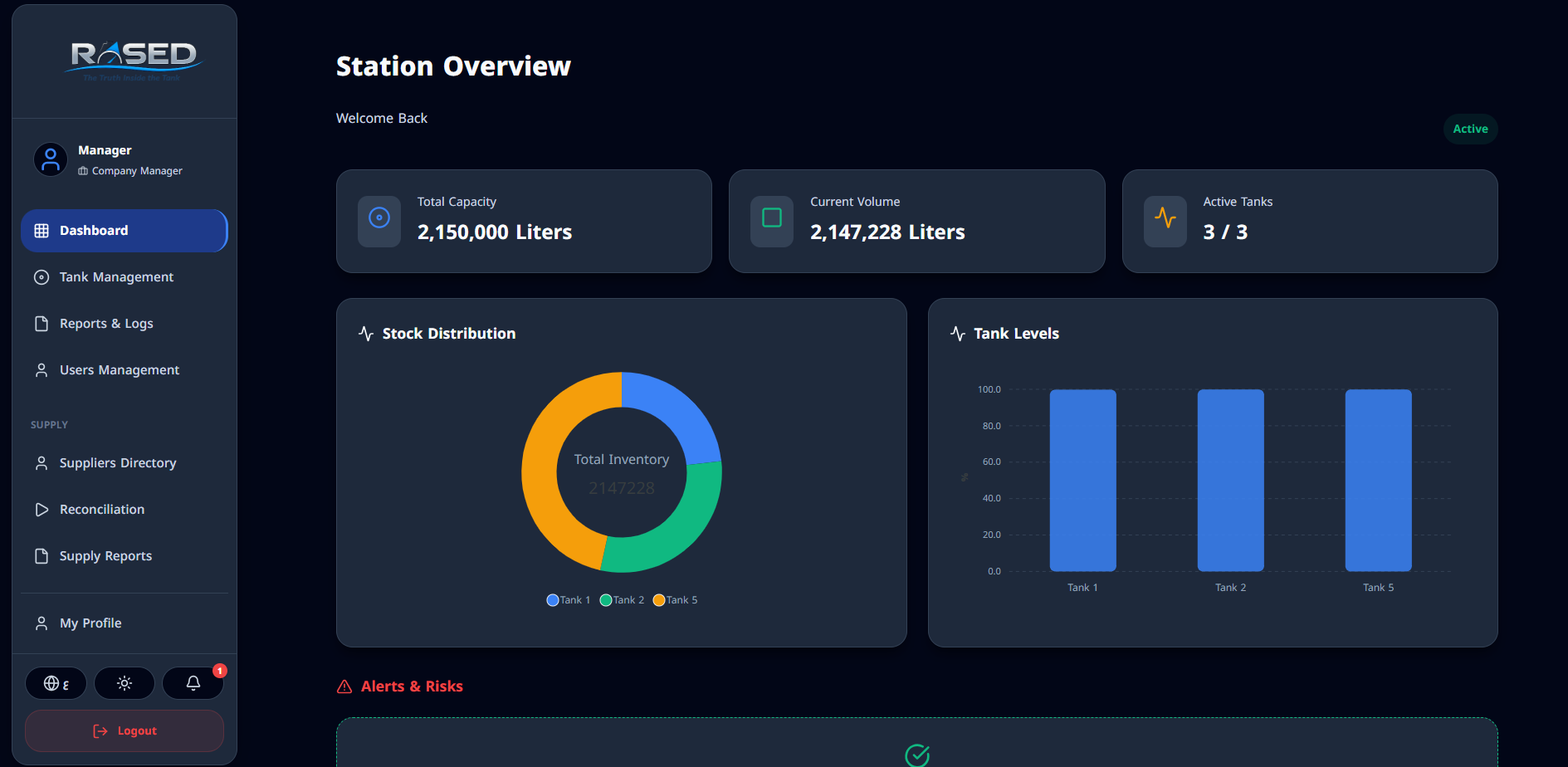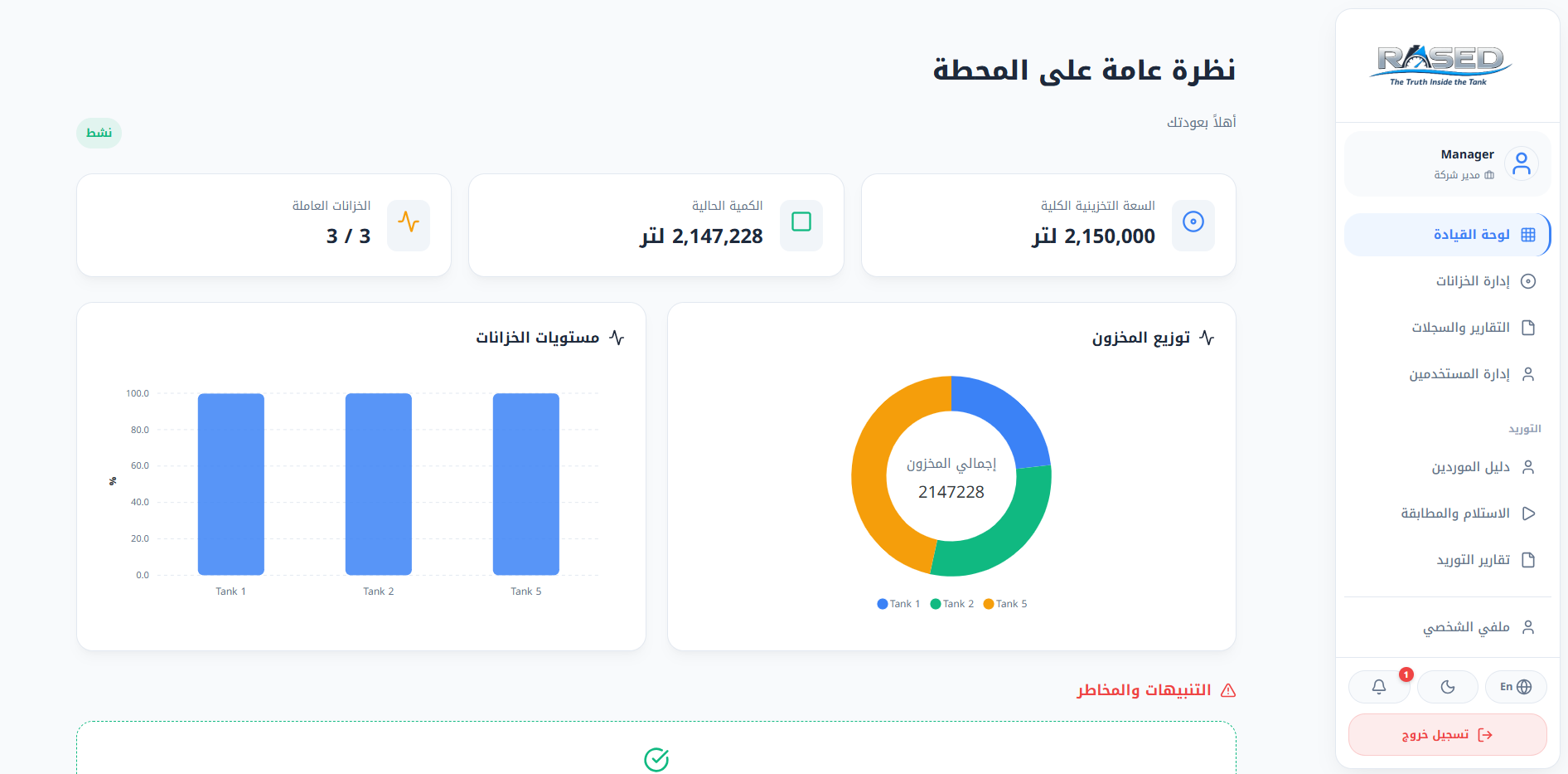 راصد هو المنظومة الرقمية المتكاملة لإدارة دورة الوقود. نمنحك القدرة على القيادة، الرقابة، واتخاذ القرار بلا ثغرات.